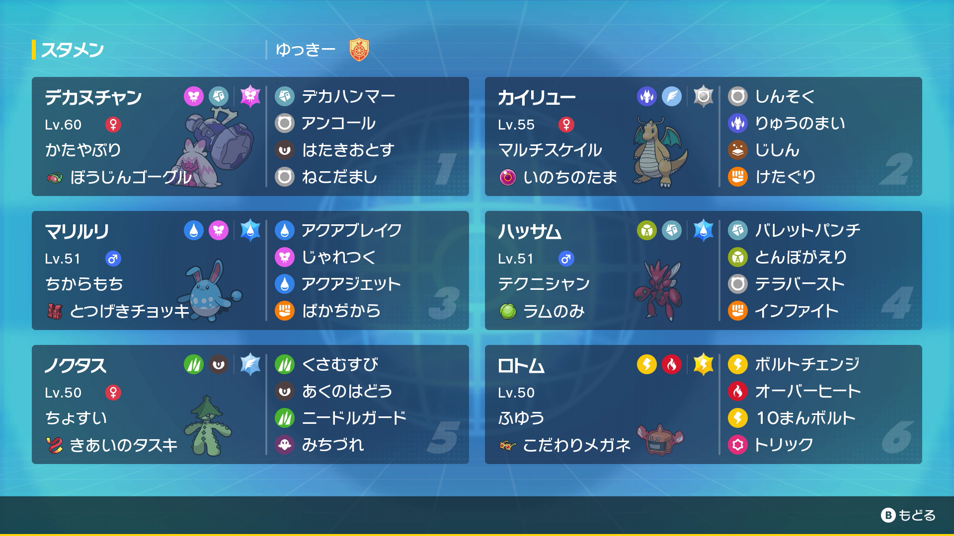 2022-12-08 【ポケモンSV】ランクバトル シーズン1 マスボ級到達 ポケモン A特化S180 準速サーフゴー抜き余りH ミミッキュ、キノガッサ狩りが仕事 いじっぱりAS ノーマルテラスしんそくでお掃除けたぐりがイイ感じ いじっぱりHA 環境に多いサザンドラをやっつけるマン いじっぱりHA 水テラバーストでびっくりさせるラウドボーンに勝てないので炎でも良いかもしれない ひかえめCS キョジオーン、ヘイラッシャ、カバルドン用兵器 H252Sキノガッサ抜き抜き余りC 電気テラスで水ロトムにも勝てる! www.youtube.com